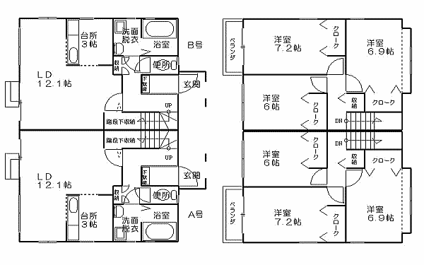 | A号 | 64,000 | 無し | 1台含む | 検針請求 | 2ヶ月 | 1ヶ月 | 3LDK | 2階建 | 現空き |